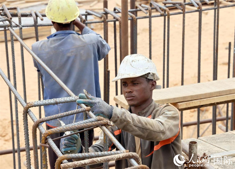 一名工人在捆扎钢筋。人民网记者 管克江摄