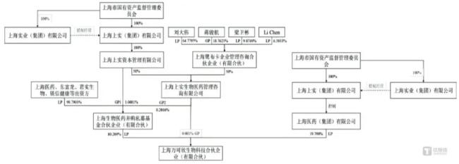 公告显示,万可欣生物由上实医药持有0.001%合伙份额,上海生物医药并购私募基金合伙企业(有限合伙)持有80.209%合伙份额,上海医药(集团)有限公司持有19.790%合伙份额。
