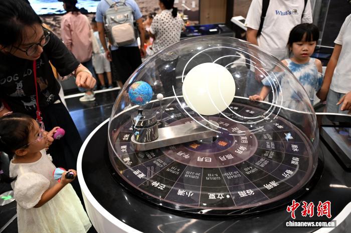 图为日地月系统模拟器吸引小朋友。中新社记者 吕明 摄