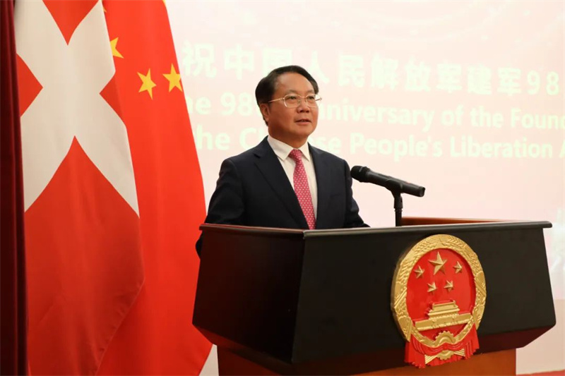 人民网斯德哥尔摩8月3日电(记者殷淼)当地时间8月1日,中国驻丹麦大使馆举行招待会,热烈庆祝中国人民解放军建军98周年。丹麦军政官员和各界人士、多国驻丹使节和武官、华侨华人、中资机构和留学生代表等约180人出席。