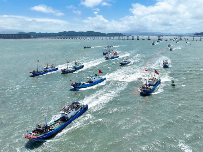 8月5日,浙江省舟山市普陀区大批渔船扬帆出海,前往东海渔场进行捕捞作业。根据《农业农村部关于2025年伏季休渔期间专项捕捞许可和捕捞辅助船配套服务安排的通告》规定,从当天12时起,单船桁杆拖网(桁杆拖虾)、笼壶类、刺网和灯光围(敷)网等四种作业类型的渔船,可以通过申请虾蟹类、中上层鱼类等资源专项捕捞许可的方式开展捕捞活动。