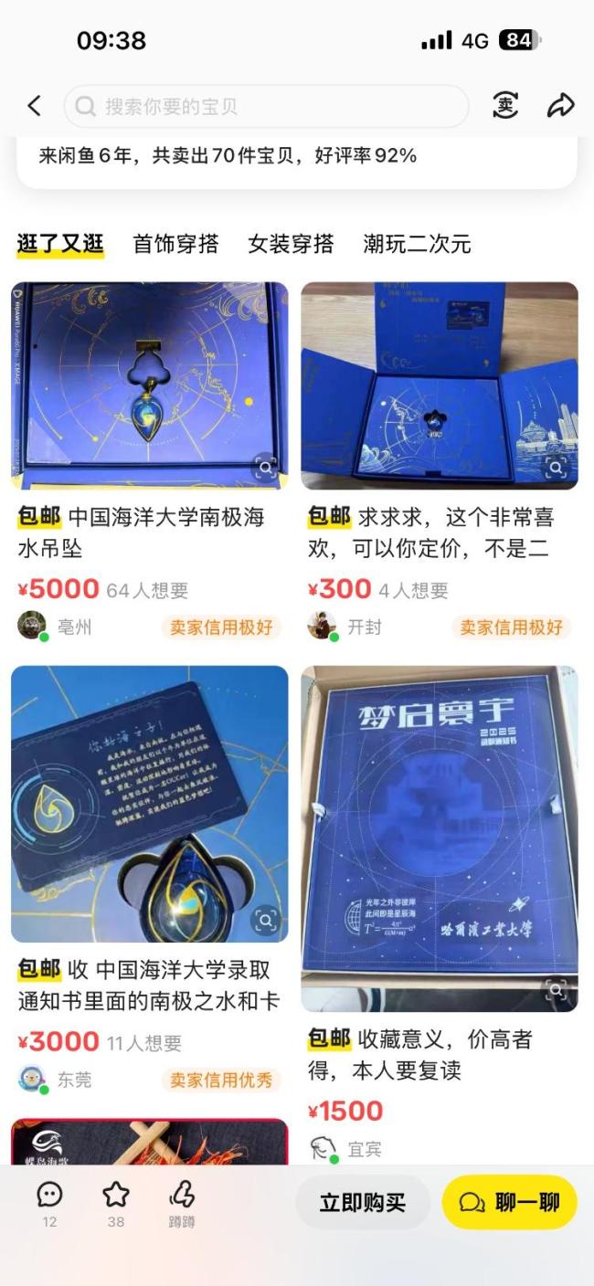 这个独特的南极海水吊坠让中国海大今年的录取通知书受到广泛关注。不少网友为中国海大点赞,称该校的录取通知书“独特又精致”“浪漫又用心”。一些老生调侃要求学校补发录取通知书。不仅学校的老生喜欢,很多网友也很喜欢,纷纷上网求购。