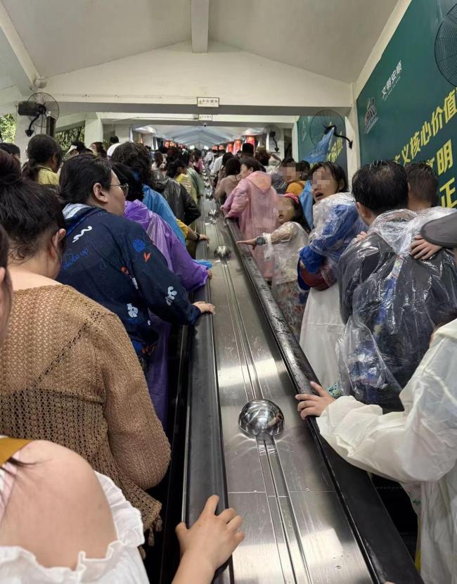 工作人员表示,当天因雷雨滞留的游客上千人,但未发现有人员受伤等情况。目前,景区扶梯运营已恢复正常。