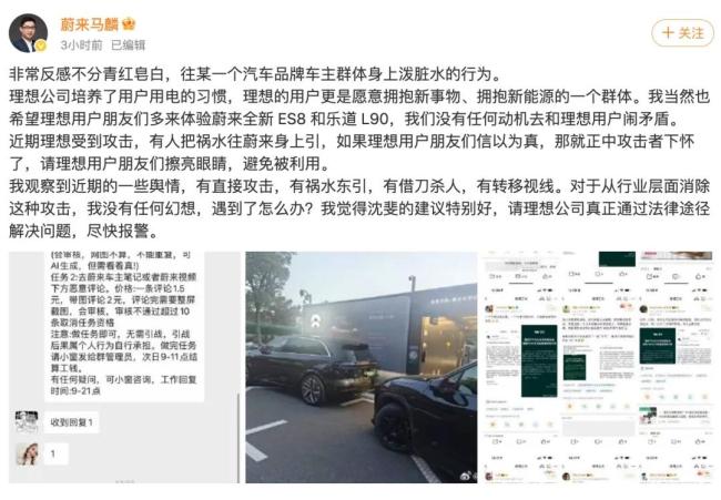此次理想和蔚来的高管对线的主要原因,还是理想车主被有组织抹黑一事。近日,多个平台都出现了很多理想车主停车不规范、压线形式、恶意加塞等不文明行为的视频或图片,对理想汽车用户形象造成了较大的负面影响,不少网友指责理想车主“素质低”。甚至有车主表示,因为这些内容,自己的车无缘无故被扔垃圾,现在出门都提心吊胆的,还有很多无辜车主受到牵连。