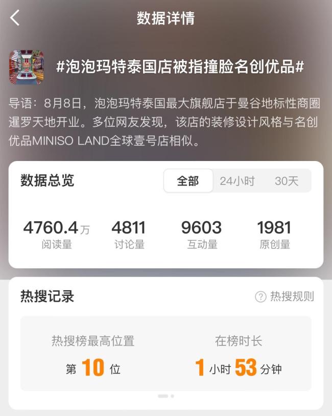 潮玩巨头之间的商战变得越来越直接。8月11日,泡泡玛特泰国店被指与名创优品门店设计相似的话题登上热搜。随后,有聊天截图在网上流传,内容显示名创优品疑似以每条300元的价格招募“水军”对相关话题进行炒作。