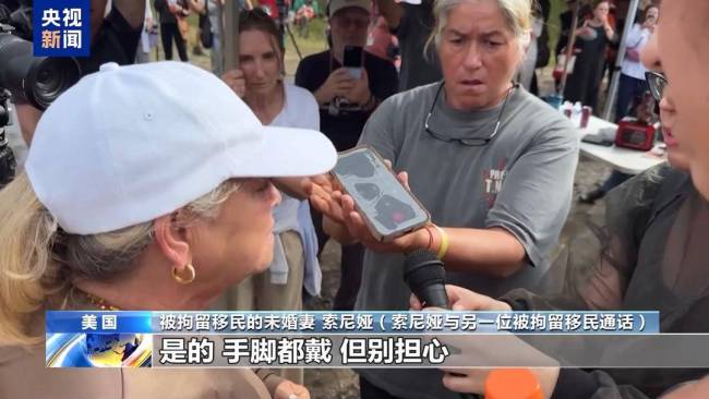 抗议者索尼娅控诉,她的未婚夫已经被关押了一个多月。她表示,未婚夫告诉她里面的条件非常恶劣——食物难以下咽,看守者一直开着灯不让他们睡觉,每餐只有五分钟时间吃饭,而且只给一小杯水。如果他们站起来,就会遭到殴打。索尼娅还提到,在与另一位被拘留移民通话中得知,其未婚夫将被戴上手铐、脚铐。她补充说,未婚夫告诉她,在拘留中心连时间和日期都不知道,也不清楚看守者的身份。看守者既不是警察也不是政府官员,没有任何移民局的官员进来和他们谈话,告诉他们接下来会发生什么。
