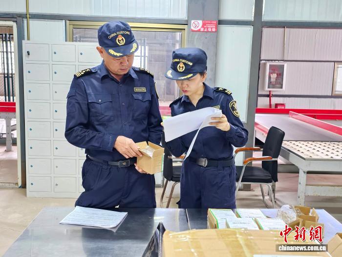 海关关员在磨憨国际快件物流中心对进境快件进行监管。赶四 摄