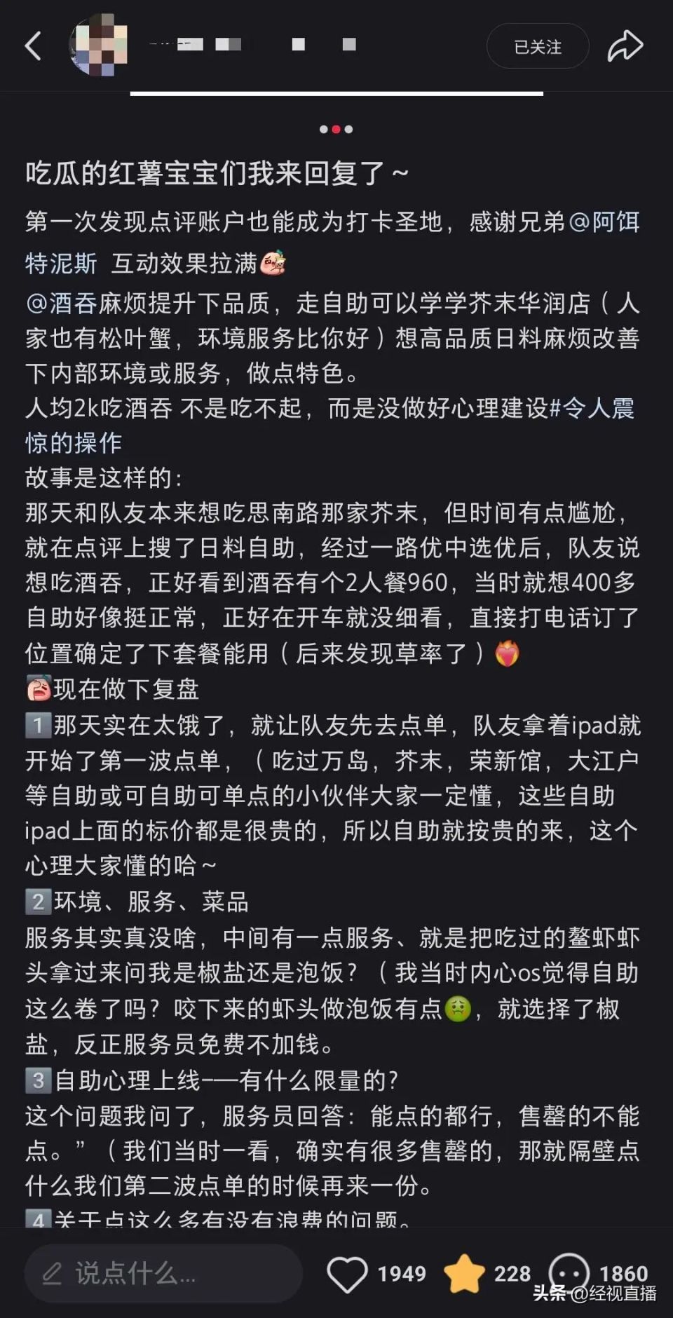 顾客日料店消费4302元引热议。