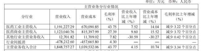 2024年医药工业营收119.12亿元,毛利率43.75%,但同比下降3.22个百分点;医药商业营收112.30亿元,毛利率27.39%,同比下降3.72个百分点,两大板块成本增速(14.04%、15.52%)均显著高于收入增速(7.52%、9.60%),成本压力凸显。