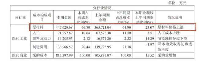核心压力来自原材料价格上升,如天然牛黄价格从2023年初的57万元/公斤暴涨至2024年底的165万元/公斤。医药工业中,原材料占成本比例由2023年的61.90%上升至2024年的66.8%。尽管同仁堂国药于2024年6月将港版安宫牛黄丸(3克/粒)提价近20%,但终端价格传导有限。