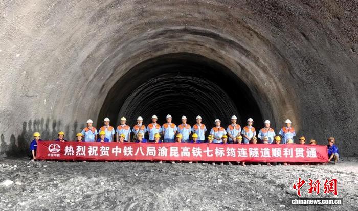 中新网成都8月15日电 (记者 刘忠俊)8月15日,重庆市至云南省昆明市高速铁路宜宾至盐津南段(以下简称“渝昆高铁川滇段”)最后一座隧道——筠连隧道顺利贯通,标志着渝昆高铁川滇段全线隧道贯通,为全线通车奠定重要基础。
