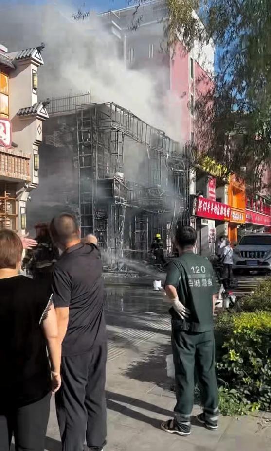 此事发生在吉林省白城市洮北区长庆街,着火的是在当地比较有名气的一家餐馆。记者尝试联系当地街道办、洮北区应急局和区政府值班室等部门,但均未得到回应,该餐馆电话也无法接通。