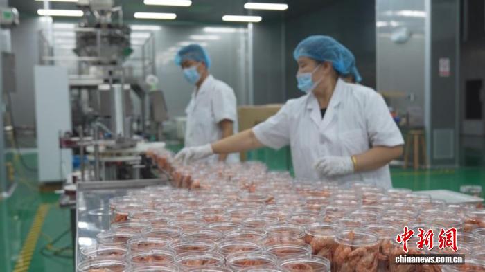虾干生产线一景。余力文 供图