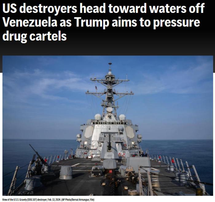 这位匿名表态的美方官员称,“格雷夫利”号、“杰森·邓纳姆”号以及“桑普森”号三艘驱逐舰预计很快抵达委内瑞拉附近海域。