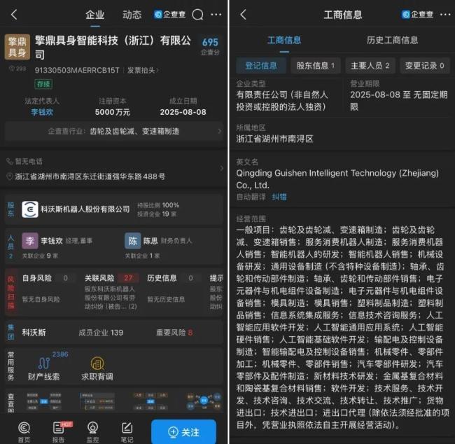 于是,在今年8月8日,科沃斯机器人股份有限公司成立全资子公司“擎鼎具身智能科技(浙江)有限公司”,注册资金5000万元。其注册的主营业务相当广泛,包括通用设备制造、智能机器人研发、人工智能通用应用系统开发、汽车零部件开发等。此举被广泛解读为科沃斯亲自下场研发机器人产品,但具体情况尚不明确。