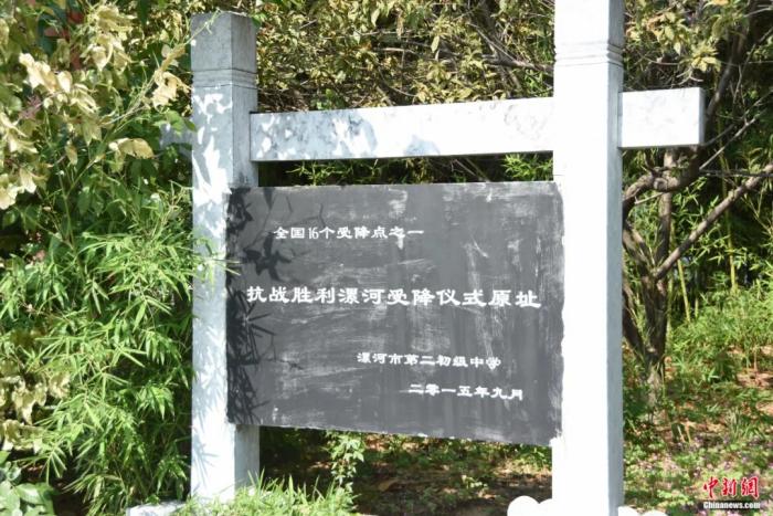 漯河市第二中学内复原日军受降仪式现场雕像。王宇 摄