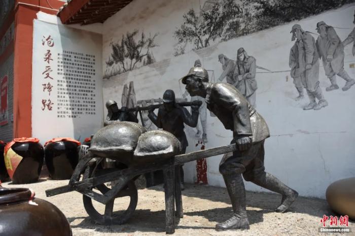 复原投降日军整修竹木街的雕像。王宇 摄