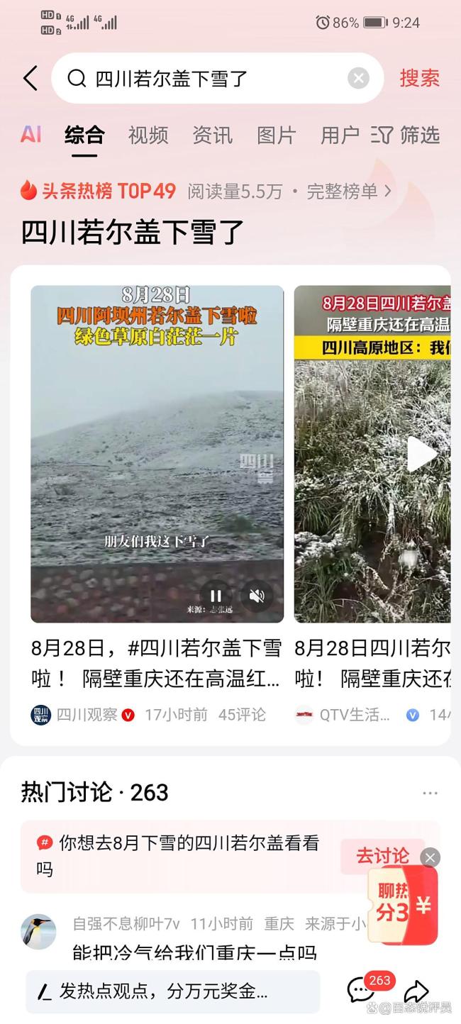 8月28日,四川阿坝州若尔盖草原、莲宝叶则景区等地突降大雪,这一罕见景象迅速在网络引发关注。