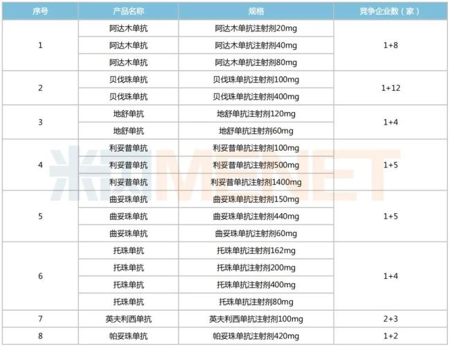 各大单抗品种竞争企业数