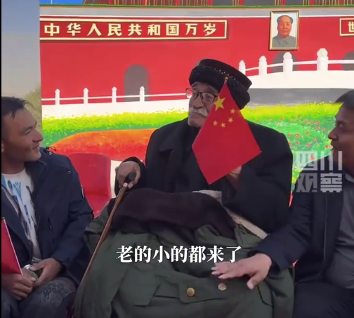 9月3日,新疆喀什。90岁老人护边38年,心愿是去趟北京,酒店老板“九三”当天帮他“圆梦”:老爷子身体状况不允许,找来墙绘师画出天安门城楼,一家老小九三当天画前看阅兵。