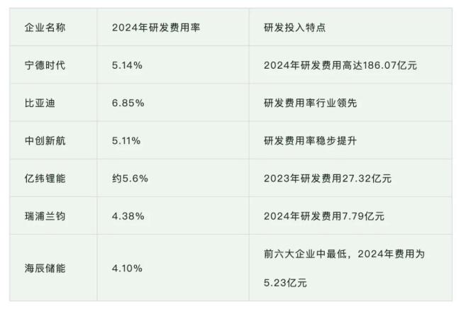 相比之下,行业龙头宁德时代当年投入186亿元进行研发时,海辰储能的投入事不足其零头的5.3亿元。这一数据之所以如此重要,是因在技术密集型的储能行业,这种投入差距最终会体现在产品性能、成本控制和市场份额上。
