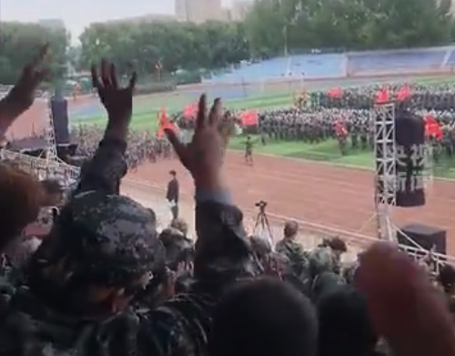 近日,黑龙江绥化学院,听障大学生组成的方队亮相军训汇演。全场师生用摇手代替鼓掌。