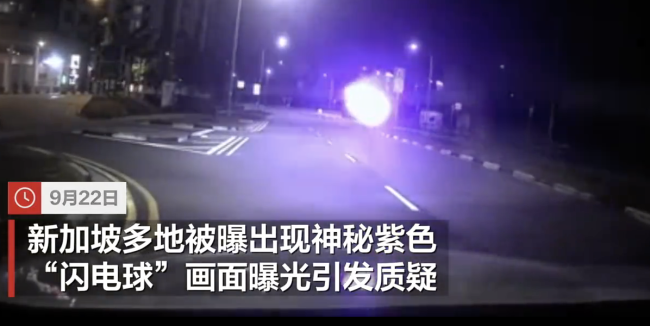 新加坡多地现紫色闪电球?官方回应 非气象现象引起。9月22日,新加坡多地出现了神秘紫色“闪电球”,相关画面曝光后引发了广泛质疑。19日,有网民拍到一个紫色球体在路上弹跳,并在发出四次“闪电”噼啪声后消失。20日,又有网民称目击到类似球体盘旋并发出明亮光芒,身后留下一条烟雾尾迹。21日,还有人在公园里看到另一个紫色球体漂浮并在草地上弹跳。