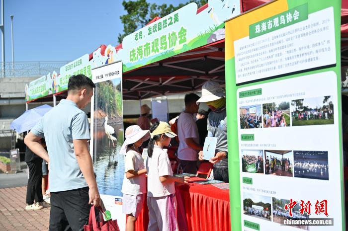 9月27日,2025年广东候鸟护飞行动启动仪式在位于广东省广州市的南沙湿地景区举行。本次活动以“绿美广东·万众护飞”为主题,近10家鸟类保护相关单位现场布展,通过打卡互动、公益课程体验、趣味鸟类科普小游戏等为民众科普野生鸟类保护法律法规和科学知识。图为鸟类知识科普展位吸引民众。中新社记者 陈楚红 摄