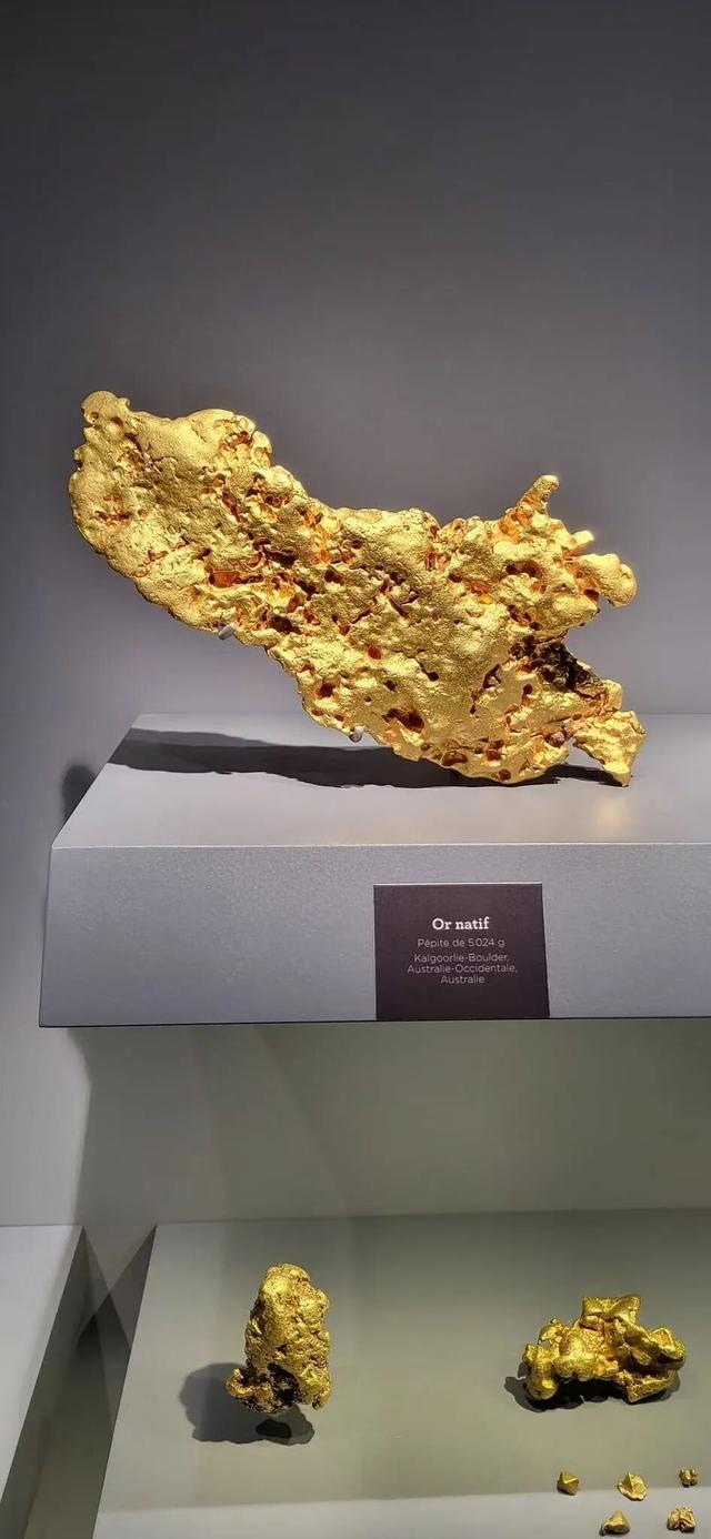 这些黄金不仅本身珍贵,还具有重要的历史和科研价值。其中包括加利福尼亚淘金热时期的标本、18世纪玻利维亚捐赠给法国科学学院的金块、1833年由俄国沙皇尼古拉一世赠予博物馆的乌拉尔金块,以及一块1990年在澳洲发现的重量超过5公斤的金块。