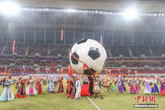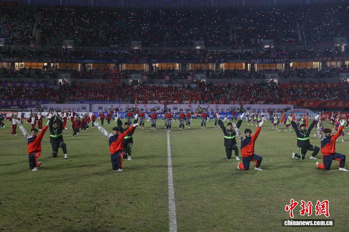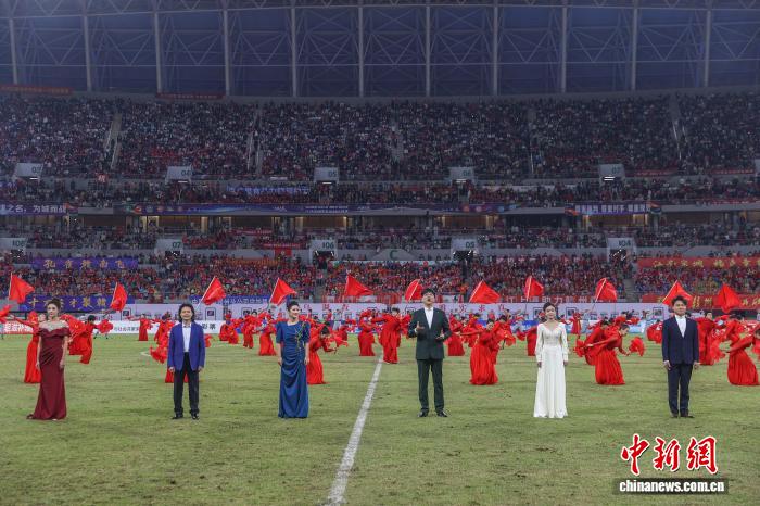 图为比赛中场休息时间,情景音诗画《这里是红军的老家》表演上演。中新社记者 刘力鑫 摄