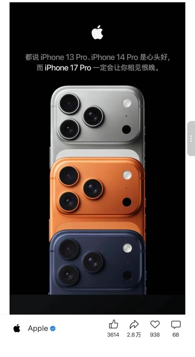 苹果喊话 iPhone 13 Pro /14 Pro 钉子户不如现在就换17 Pro吧 性能大幅提升