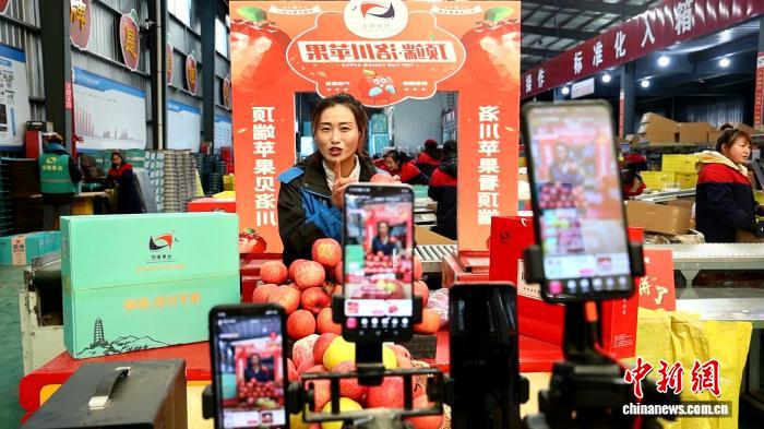 销售人员在网络平台推荐产自延安洛川的苹果。李进 摄