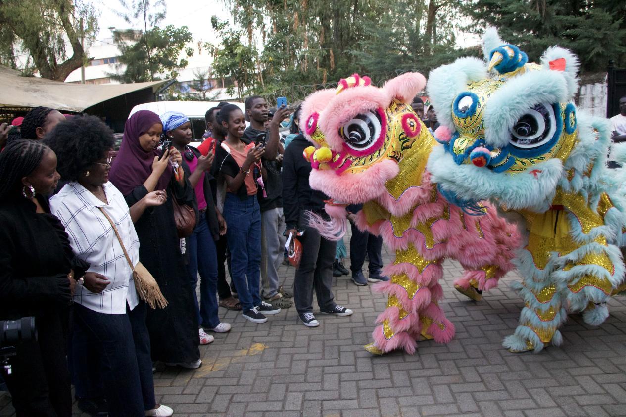 演出前,戏剧大篷车艺术团还和内罗毕大学孔子学院、肯雅塔大学孔子学院共同在剧院外广场举办文艺表演、文化体验互动和荆楚小吃品鉴等暖场活动。