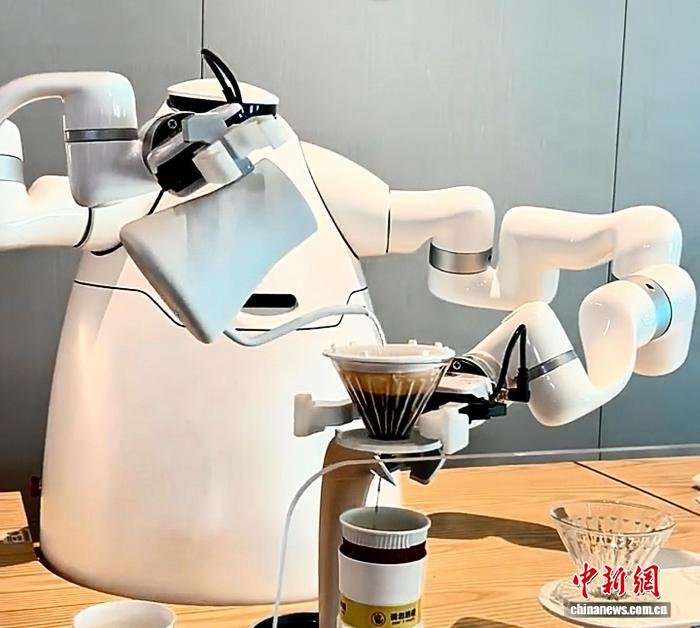 沈阳人工智能产业园内,机器人正在为观众冲泡咖啡。杨茜茜 摄