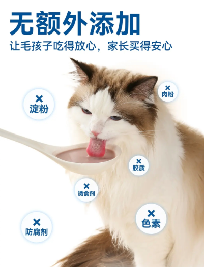 产品核心是高达40%以上的鸡肉含量,主要选用冻鸡胸肉,提供了扎实的动物蛋白。更关键的是其营养成分:以干物质计,粗蛋白含量不低于60%,粗脂肪不低于18%。这意味着即使在水分含量很高(湿基计超90%)的情况下,它依然能提供猫咪日常所需的核心能量和构筑体质的蛋白质。同时,产品严格保证了钙、磷、牛磺酸等关键元素的科学配比。例如,牛磺酸含量≥0.55%,这是维护猫咪心脏和视力健康不可或缺的。让猫咪在愉快喝汤的同时,就完成了基础营养的补充,一举两得。