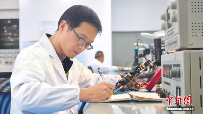 面对电路板芯片核心技术的空白,蒋南山一头扎进了工作室,常常研究到天亮。没有资料,他就一个个测元件,测坏了四五对表笔;编程效率低,他就从C语言手写代码转到MATLAB仿真软件,每天晚上再把成果记录下来。“用C语言写上千行代码才实现的功能,用MATLAB就能直接调用,效率高多了。”蒋南山感慨道。
