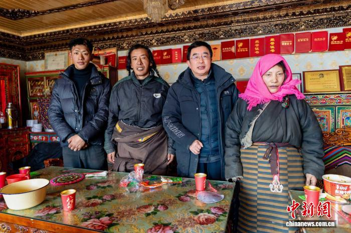 2025年12月21日,连玉明(右二)走进海拔5300米的长江源头牧民家中调研,并与牧民一家合影。受访者供图