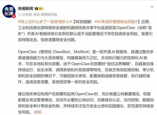 “龙虾”全网刷屏 劝你不要盲目跟风 火热背后隐患大