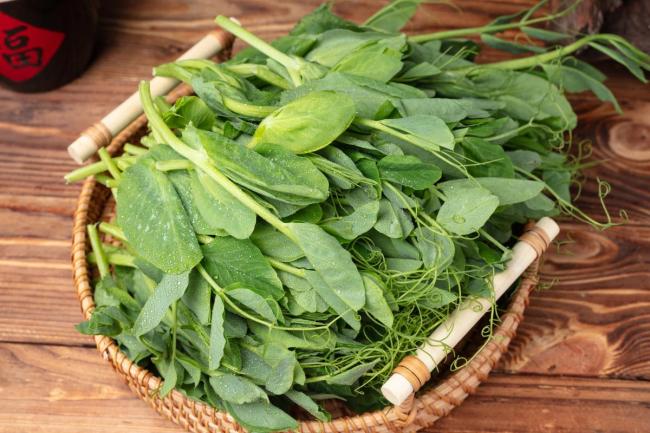 豌豆苗则是春日餐桌上的翡翠。这些水灵灵的嫩苗咬下去会发出清脆的声响,带着豌豆特有的清甜。上海人喜欢用它炒香干,广东人偏爱清炒,而我独钟虾皮炒法——金黄酥脆的虾皮遇上碧绿的豆苗,咸鲜与清甜在舌尖跳华尔兹。更妙的是它富含的维生素C是柑橘的2倍,抗疫养颜两相宜。