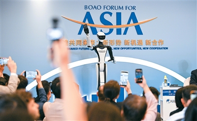 博鳌亚洲论坛二〇二六年年会期间,多元智能设备全方位护航盛会运行,以科技力量赋能智慧办会。图为在年会分论坛上参与互动的人形机器人。 新华社记者蒲晓旭摄 日前,博鳌亚洲论坛2026年年会·华商领袖