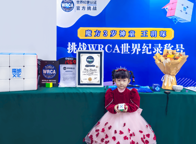 近日,延吉3岁女童王玥琛用19秒还原了三阶魔方,创造了最小年龄在20秒内还原三阶魔方的WRCA世界纪录