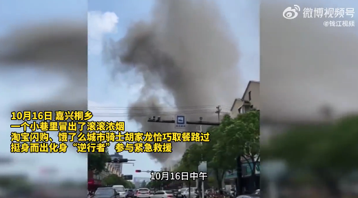 • 浓烟中逆行!小巷起火外卖小哥逆行疏散人群