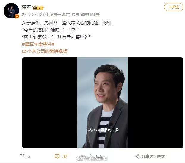 2025年雷军年度演讲将于本周四举行,主题为“改变”。雷军在短视频中分享了他对改变的看法。他认为不断尝试、不断努力、不断成长,就有机会逆天改命。从小镇青年到世界500强公司的创始人,雷军的经历常被看作是逆天改命的典范