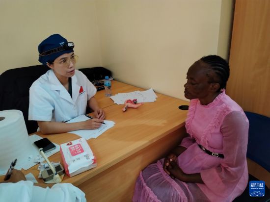 11月25日,在赤道几内亚首都马拉博一所学校,中国医疗队妇产科医生为患者诊疗。  第34批援赤道几内亚中国医疗队25日在赤几首都马拉博一所学校开展义诊活动,为200多名师生进行诊疗并发放药品。