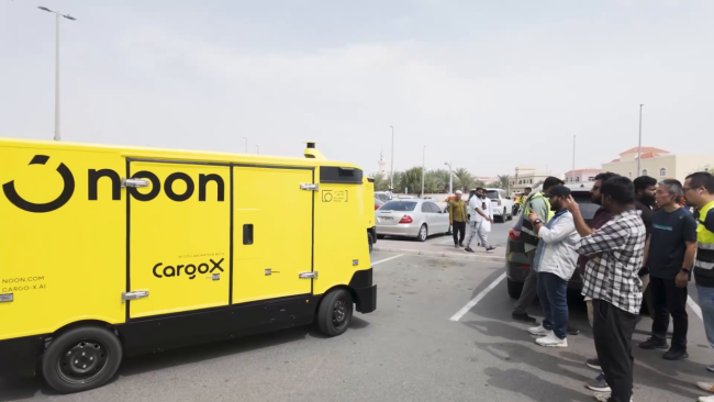 正值阿联酋当地开斋节前后,阿布扎比街头一批亮黄色的无人配送车繁忙地穿行于社区道路,引来不少居民驻足拍照,甚至主动跟随观察其运行路径。