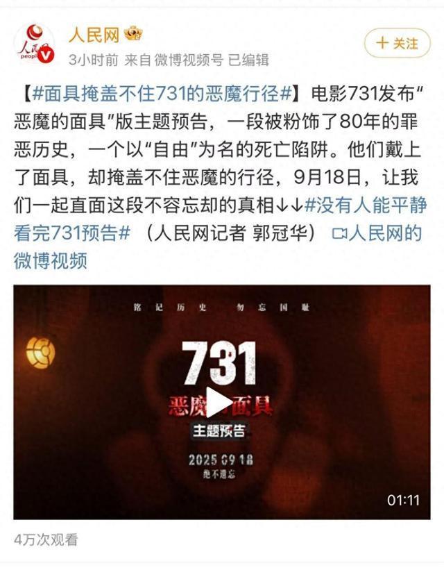 当人民网、央视新闻、新华社这三家国家级媒体共同为电影《731》发声时,这部电影显然不仅仅是一部普通的影片,而是一次对历史真相的庄严捍卫。正当我们期待通过影像揭开历史伤疤时,日本外务省却暗中阻挠,雇佣水军抹黑