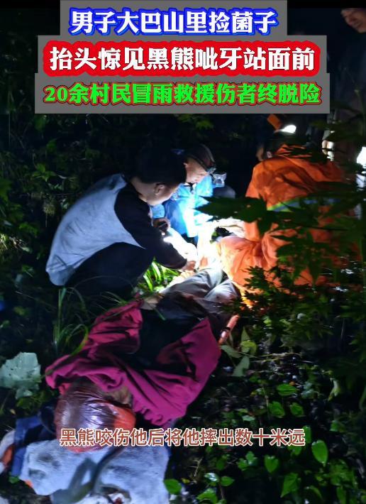 在渝陕交界处的大巴山里,李先生和妻子冒雨进山捡菌子。9月20日那天,李先生突然抬头看到一头黑熊呲牙站在面前,顿时心生恐惧。他们家住在重庆市城口县高楠镇岭楠村,村子位于大巴山自然保护区,与陕西省紫阳县交界